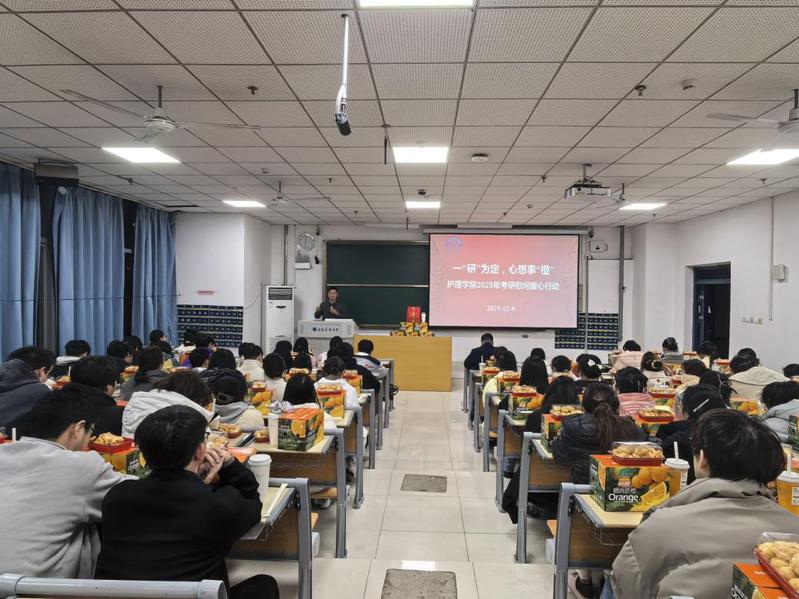 以 “一‘研’为定,心想事‘橙’” 为主题,举办2022级考研学子慰问会。学院党委书记薛磊出席会议,党委副书记王磊主持会议。学院领导与全体备考学子面对面亲切交流,传递学院的深切关怀与殷切期望,为即将踏上考研战场的学子们加油鼓劲。薛磊对同学们在备考过程中展现出的执着精神和刻苦态度给予高度肯定。他表示,考研之路虽充满挑战,但每一份坚持都弥足珍贵,学院始终是同学们坚实的后盾,将持续关注大家的备考需求,全方位做好服务保障,营造安心舒心的学习环境。针对冲刺阶段的复习,他叮嘱同学们要科学规划时间、精准梳理重点,在巩固基础的同时提升备考效率;要注重心理调适,保持从容平和的心态,做到劳逸结