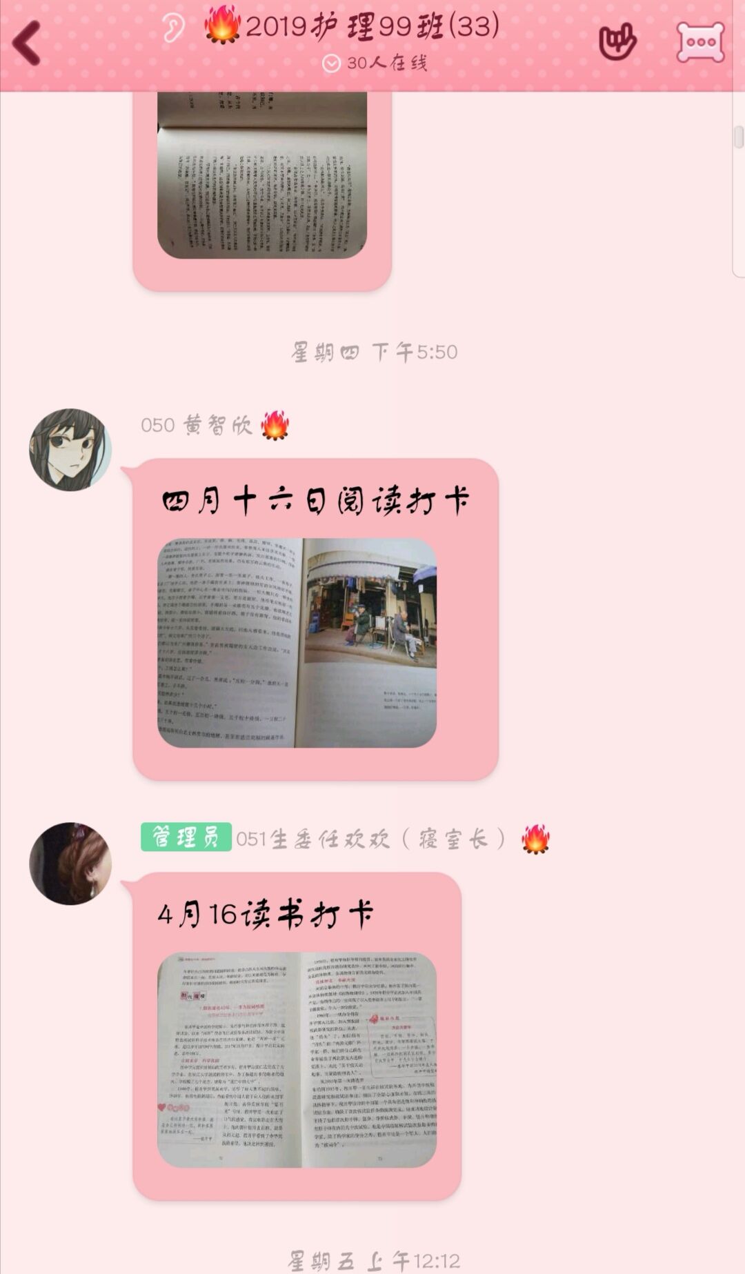 为迎接第25个“世界读书日”的到来,污污漫画 2019级99班团支部的同学们在班级群里开展了“以书香助力战“疫”,用阅读通达未来”的线上读书打卡活动,所有同学都坚持1月有余。