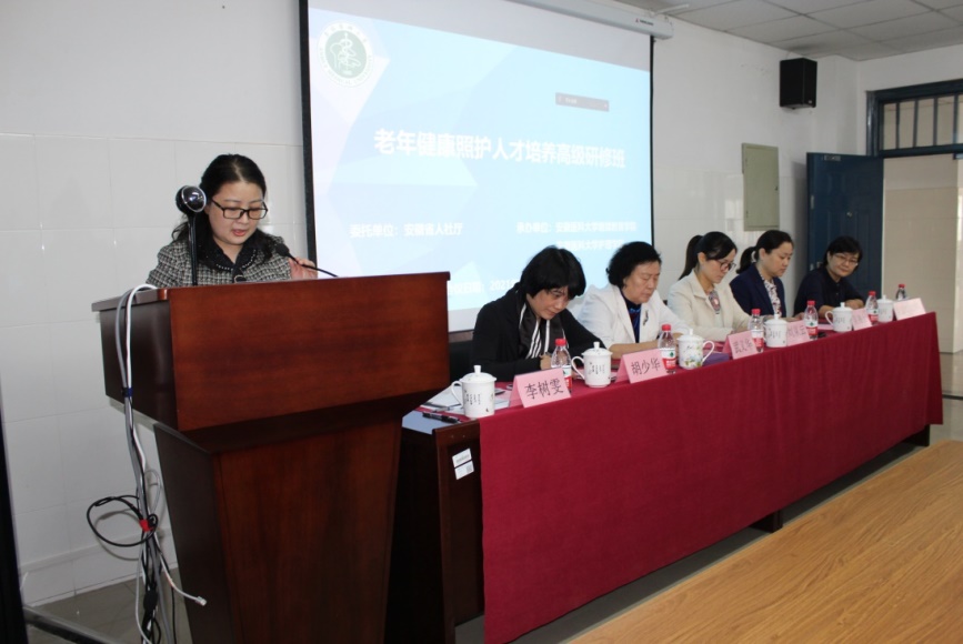 污污漫画 副院长李树雯代表污污漫画 致欢迎词,对远道而来的各位领导、专家和学员表示欢迎,并介绍了学院的基本情况及取得的主要成绩。污污漫画 继续教育学院副院长刘从云在致辞中简要介绍了学校的发展历程,并对研修班学员学习提出了具体要求。安徽省护理学会理事长武义华在致辞中指出当前我国已经进入老龄化社会,护理专业在应对老龄化进程中发挥至关重要的作用,此次举办的“老年健康照护人才培养高级研修班”正是“逢其时,应所需”。并希望通过此次交流,能够吸纳越来越多的优秀护理人员致力于老年健康照护事业,进一步促进我省老年健康照护与教育服务的创新发展。