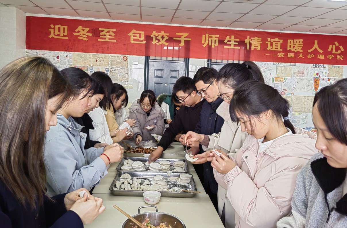 师生同乐,情暖冬至。冬至当天,该院举办“迎冬至、包饺子,师生情谊暖人心”活动,师生代表共50余人齐聚一堂,包饺子、话家长,气氛融洽,活动弘扬了传统文化,增进了师生交流,让远离家乡的同学感受到集体的温暖和学院的关怀。
