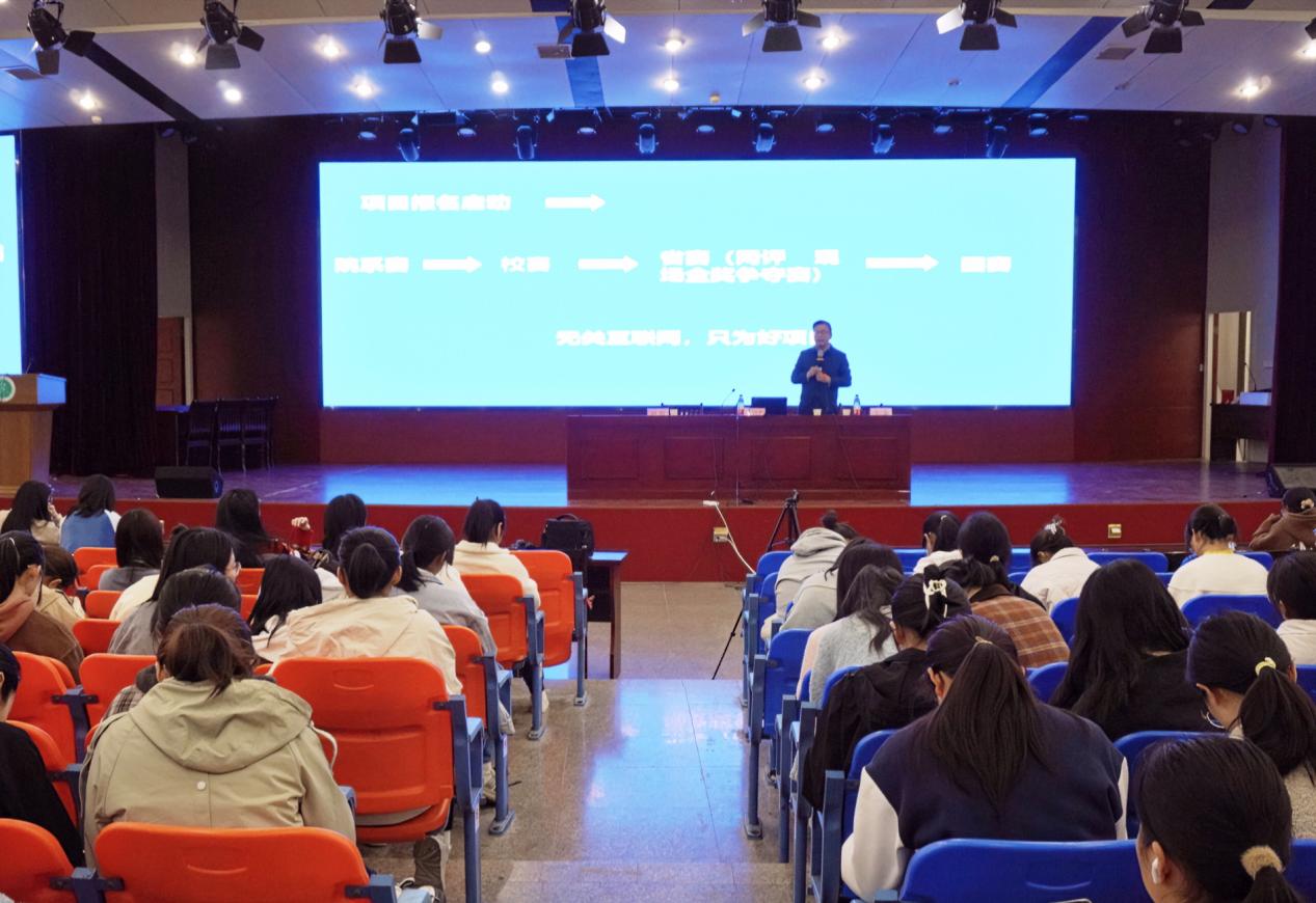 4月6日,污污漫画 邀请安徽省“互联网+”大学生创新创业大赛组委会执行秘书长、安徽省大学生创新创业教育办公室主任刘沛平为该院学生进行创新创业教育主题讲座。该院副院长赵梅主持讲座。