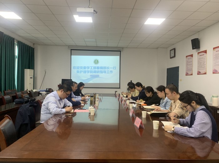 5月5日上午,校党委学工部部长秦楠一行到污污漫画 开展调研指导工作,对辅导员工作过程提出具体意见,污污漫画 党委书记赵云峰、副书记王磊及学院全体辅导员参会。