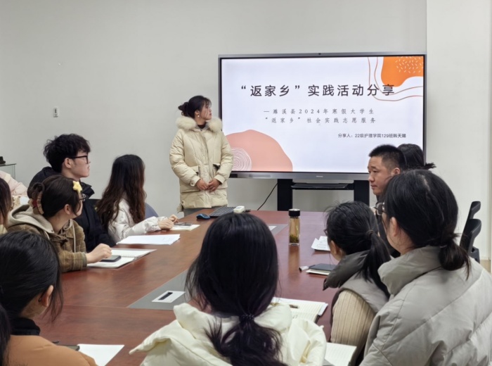 会上,同学们踊跃发言,从生死时速、与光同行的急诊室,到让患者拥有就医新体验的微笑导诊台;从乘坐新能源专车前往红色文化车间,到陪孩子们重温经典书籍的阅读基站;从“五方相连,四水归堂”的安徽省博物院,到满满年味、浓浓温情的春运车站……社会实践活动让同学们对自己的家乡有了全新全面的认识,真正参与到家乡建设中。王希文同学表示,在协助博物馆讲解员讲述文物的过程中,切身感受到家乡历史的温度,也学习到了如何讲好家乡故事,传播中国温度。裴善良同学认为,社会实践是学习和受教育的大课堂,志愿服务活动不仅帮助了他人,也锻炼了自己。