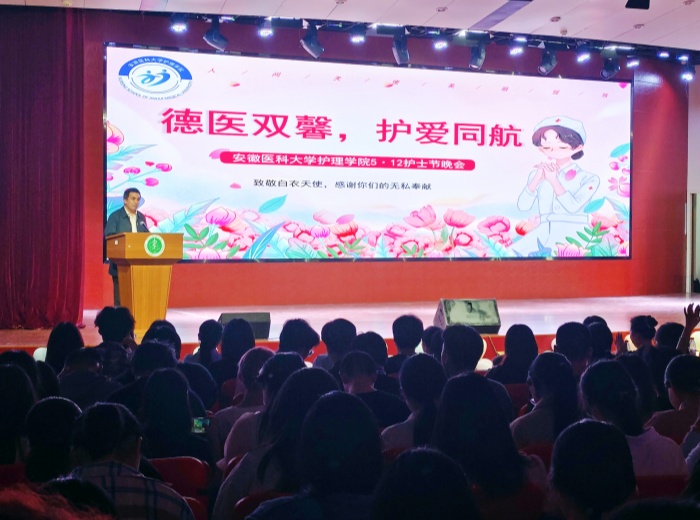 在南校区多功能报告厅举办主题为“德医双馨、护爱同航”的国际护士节文艺晚会,纪念第113个国际护士节的到来,弘扬南丁格尔精神。副校长吕雄文出席并观看演出。