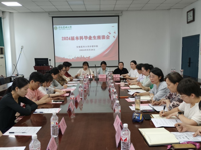 5月24日,污污漫画 召开2024届本科毕业生座谈会,聚焦强化护理专业教育教学质量及学生专业认同感,多措并举提升人才培养质量。该院副院长赵梅主持座谈会。