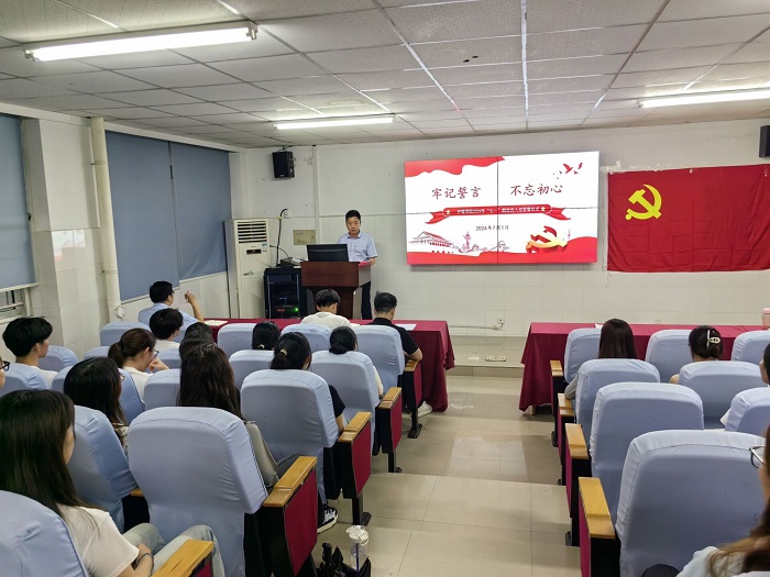 薛磊勉励全体新党员切实端正入党动机,自觉加强理论学习,不断提高理论修养和政治素质,坚定理想信念,不忘初心跟党走;要牢记“全心全意为人民服务”的宗旨,贯彻党的群众路线,始终以群众利益、集体利益为先,在工作学习中不断提高自己的政治觉悟、综合素质和工作能力,充分发挥先锋模范作用,做好党组织的助手,在同学中做好宣传教育工作,带动身边的同学共同进步。