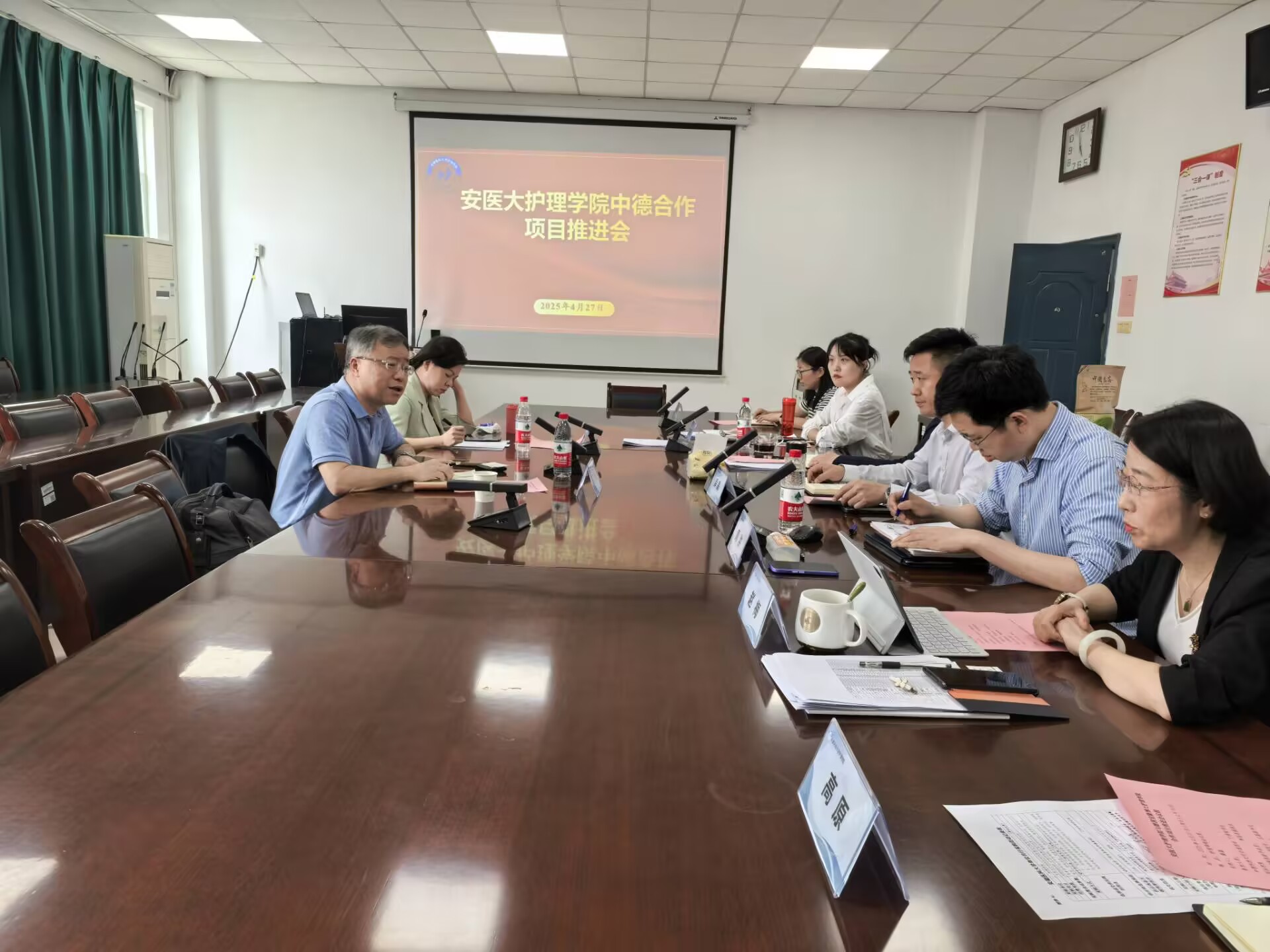 4月27日上午,污污漫画 召开中德合作项目推进会。会议由院党委书记薛磊主持,德国萨克森经济教育协会中国护理项目负责人丁涛,国际学院副院长李菲菲,污污漫画 院长周洪,院党委副书记、纪委书记王磊,副院长赵梅、陈滢出席会议。