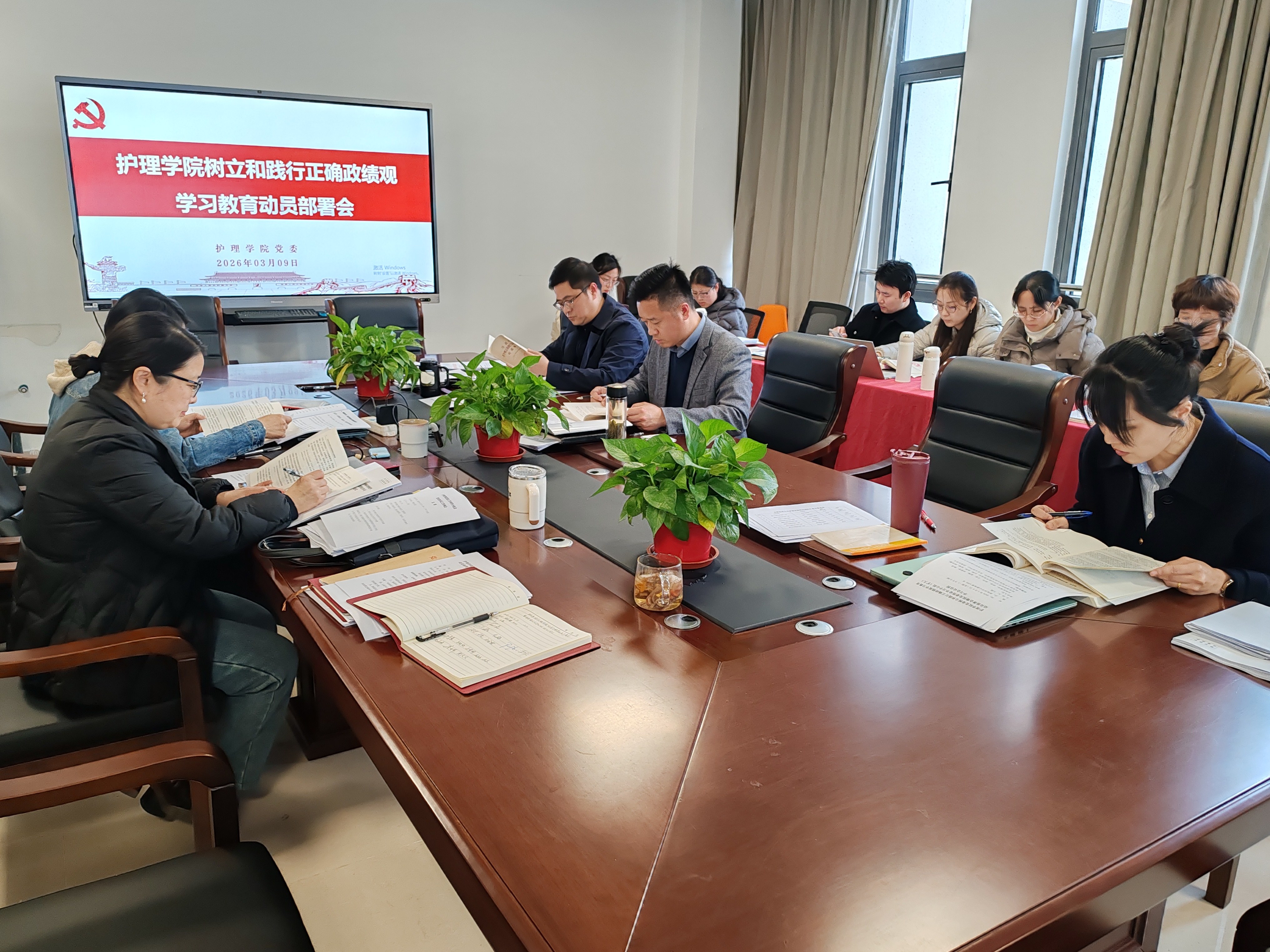 3 月 9日下午,污污漫画 党委召开树立和践行正确政绩观学习教育动员部署会暨院党委理论学习中心组(扩大)学习会。